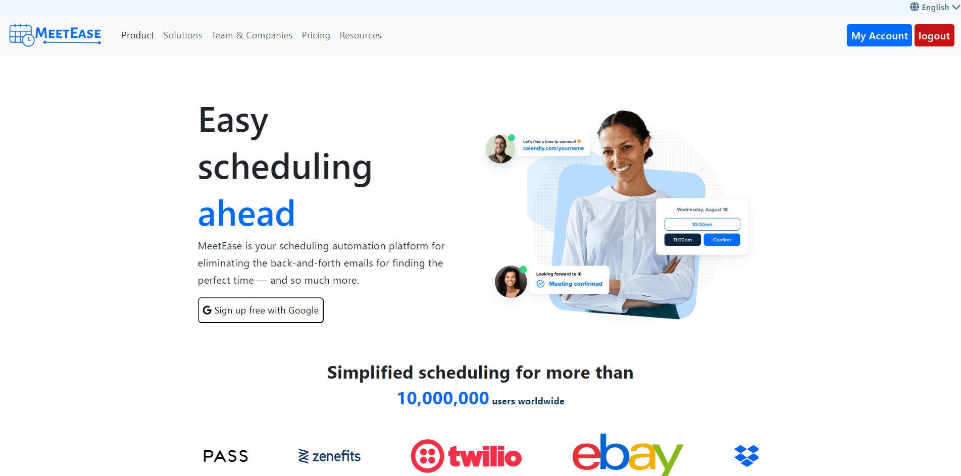 MeetEase is a web application that allows users to easily schedule and manage online meetings. Created Dynamic Booking Page using ejs.